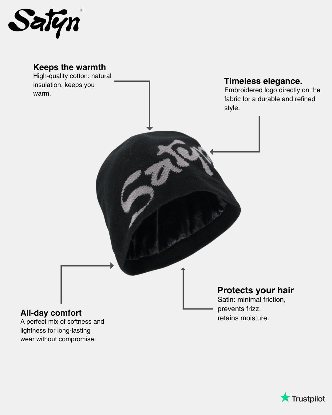 Take care of your hair in style now with our Satyn beanie, the essential accessory to combine modern style and hair care! This beanie is offered for streetwear lovers and those looking for functionality without compromising on their look. Our beanie is a perfect balance between aesthetics and well-being.
